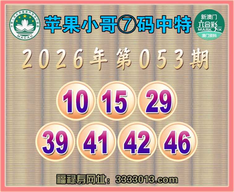 053期:🌸『苹果小哥』🌸⑦码中特🌸【10.15.29.39.41.42.46】开:15