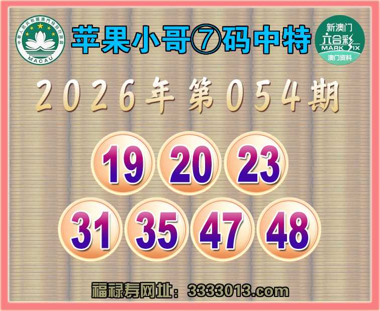 054期:🌸『苹果小哥』🌸⑦码中特🌸【19.20.23.31.35.47.48】开:48