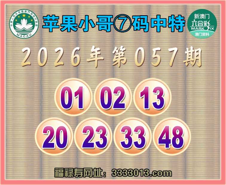 057期:🌸『苹果小哥』🌸⑦码中特🌸【01.02.13.20.23.33.48】开:23