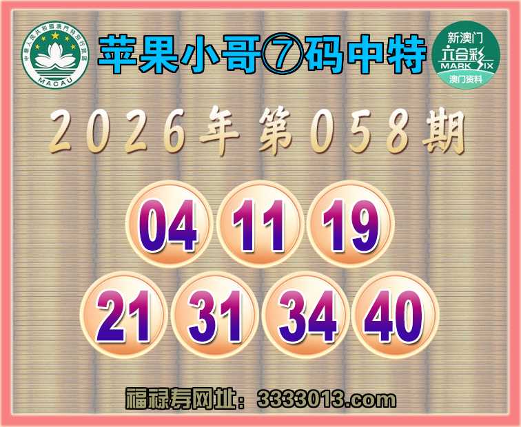 058期:🌸『苹果小哥』🌸⑦码中特🌸【04.11.19.21.31.34.40】开:31