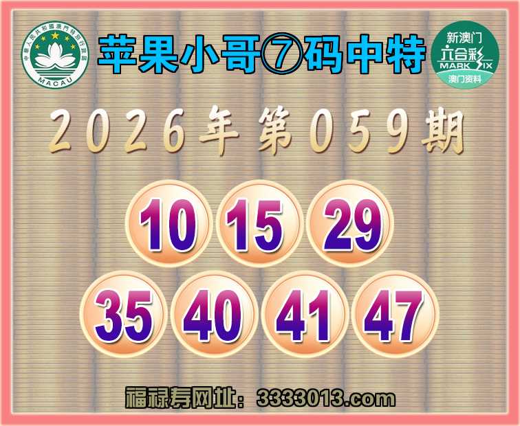 059期:🌸『苹果小哥』🌸⑦码中特🌸【10.15.29.35.40.41.47】开:10