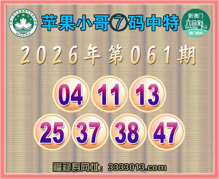 061期:🌸『苹果小哥』🌸⑦码中特🌸【04.11.13.25.37.38.47】开:29