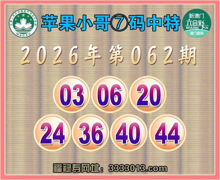 062期:🌸『苹果小哥』🌸⑦码中特🌸【03.06.20.24.36.40.44】开:24准实力上榜