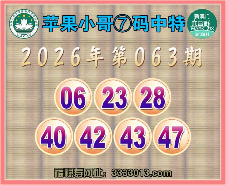 063期:🌸『苹果小哥』🌸⑦码中特🌸【06.23.28.40.42.43.47】开:28准实力上榜