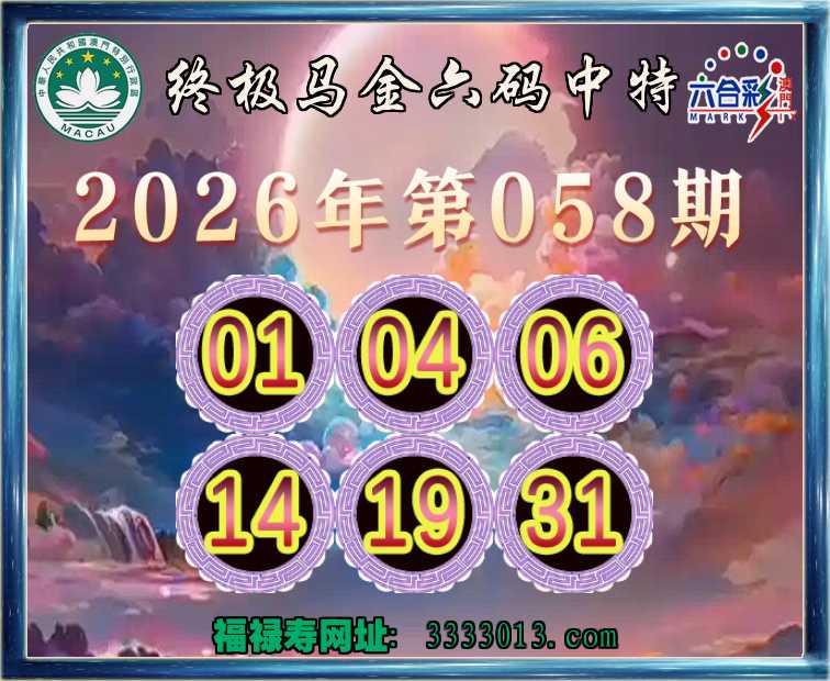 058期: 终极马金 🚵‍♀️六码中特🚵‍♀️【01.04.06.14.19.31】开:31