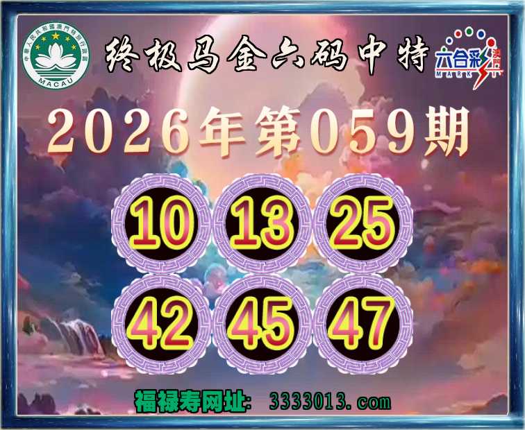059期: 终极马金 🚵‍♀️六码中特🚵‍♀️【10.13.25.42.45.47】开:10